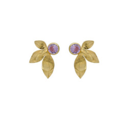 Pendientes cortos hoja Bom Dia con 7mm cristal violeta en Plata baño OroPendientes cortos con cristal y plata de ley bañados en Oro de 18kt. Tamaño...