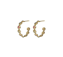 Pendientes aro textura círculo Bruma con cristal multicolor en Plata baño OroPendientes aro con cristal multicolor de Plata de Ley bañada en Oro de...