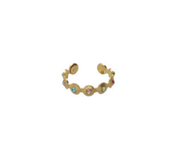 Anillo ajustable textura círculo Bruma con cristal multicolor en Plata baño OroAnillo ajustable con cristal multicolor de Plata de Ley bañada en...