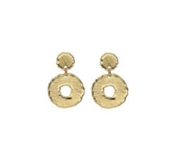 Pendientes Plata baño de oro cortos textura círculo AlaskaPendientes cortos de Plata de Ley. Tamaño del motivo de 2,5cm x 1,6cm en forma de...