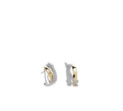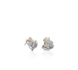Pendientes plata bicolor cruzados circonitasLargo 1,8 cmCierre omega