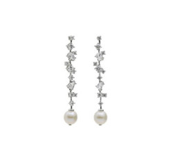 Pendientes plata perla circonitas formasLargo 5 cmCierre tuerca presión