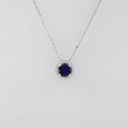 Anillo de Oro blanco de primera ley (750/1000) con 14 diamantes de peso total 0,17 qt. (Color: Top Wesselton (G) Pureza: SI) y 1 zafiro azul...