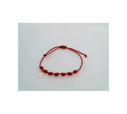 PULSERA 7 NUDOS NYLON ROJO FLOR ORO 6 MMCIERRE NUDO DESLIZANTE