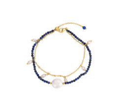 PULSERA PLATA CHAPADA BOLITAS LAPISLAZULI Y PERLA BARROCACOLECCIÓN LA VIDA