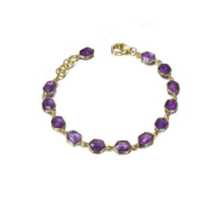 Pulsera geométrica con Amatistas en baño de oro 18kPulsera con eslabones de piedras naturales Amatista facetadas en forma hexagonal, en plata de...