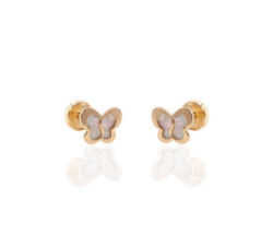 Pendientes de oro amarillo de 18 k, mariposa con nácar.Cierre de roscaMedidas: 5 x 5.5 mm