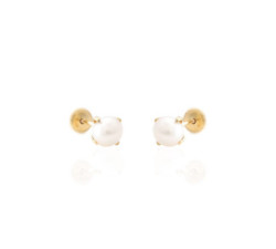 Pendientes de oro amarillo de 18 k, perla de 5 mm en 4 garras.Cierre tuerca de rosca