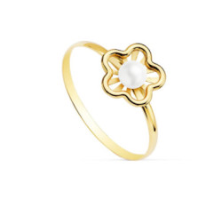 Anillo oro flor calada de 8 mm perla de 3 mmMedida nº 12