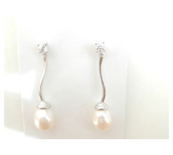 Pendientes plata rigido perla circonitaLargo pendiente 42 mmCierre tuerca presion