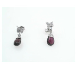 Pendientes oro blanco mariposa brillanteCIERRE TUERCA PRESIONLARGOS MARIPOSA BRILLANTE GARRA Y AMATISTA PIEDRA FINA BRIOLETTE