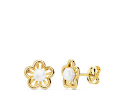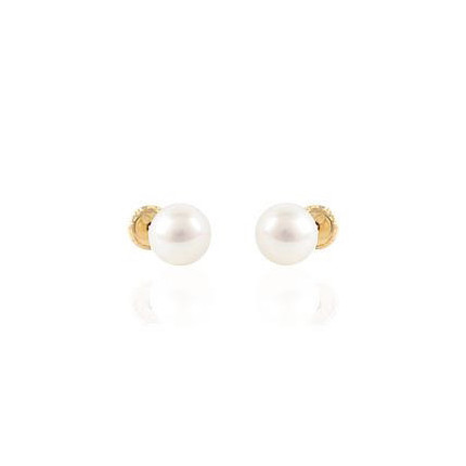 Pendientes de oro amarillo de 18 k, perla de 7 mm.Cierre tuerca de rosca