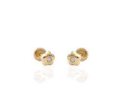 Pendientes de oro amarillo de 18 k. Flor con circonita.Medidas: 4,5 mmCierre tuerca de rosca