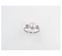 ANILLO ORO BLANCO PERLA BOTON Y CIRCONITASMEDIDA ANILLO Nº 11