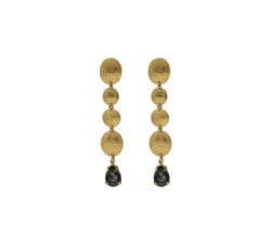 Pendientes largos con cristal y plata de ley bañada en Oro de 18kt. Tamaño del motivo de 4,5x1,8cm, forma de lágrima y color negro de la colección...
