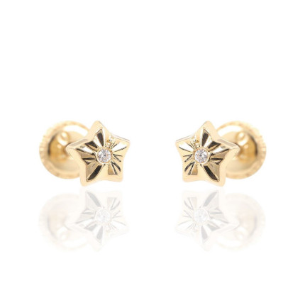 Pendientes de oro mariposa tallada de 18 k,con forma de mariposa y en el centro una circonita.Medidas: 3 mm x 3.50 mmCierre tuerca de rosca
