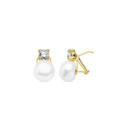 Pendientes oro perla cultivada circonita 4 garras tu y yoPerla cultivadaCierre omega