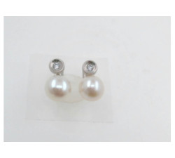 PENDIENTES ORO BLANCO CIRCONITA PERLA CULTIVADA CHATON CIRCONITA BLANCACIERRE BALLESTILLA