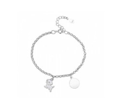 Pulsera de plata rodiada rolo de 15+3 cm con perro esmaltado y disco de 10 mm colgando