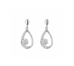 Pendiente de plata rodiado gota con flor de circonita de 26 mm