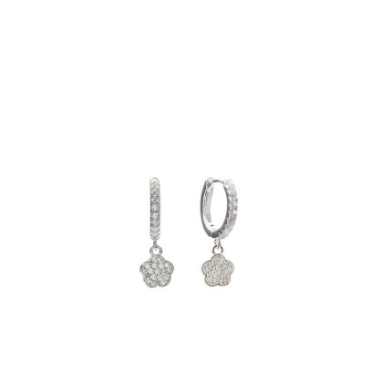 Pendientes Oro Flor Pequeños 18kPar de pendientes en forma de flor baratos pequeños en oro blanco 18k con certificado de calidad y cierre rosca de...