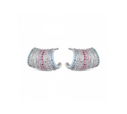 Pendiente de plata rodiado 8 aros de 17 mm con circonitas multicolor cierre presión