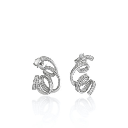 Pendiente plata bicolor forma circonitas. Pendiente de plata bicolor con elegante diseño estructural, de líneas definidas y estilo contemporáneo....