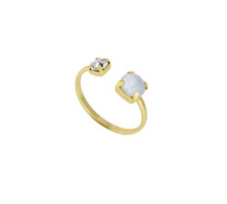 Anillo ajustable de cristal y Plata de Ley bañada en Oro de 18kt ajustable desde la talla 11 a la 20. Tamaño del motivo de 0,6x0,6cm de la...