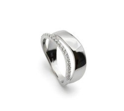 ANILLO ANCHO DE PLATA CON PARTE ANCHA DE PLATA Y TIRA DE CIRCONITASAnillo ancho de plata con parte central de plata sólida y tira de circonitas, un...