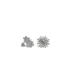 Pendientes cortos para novia en plataPendientes cortos de plata de primera ley (925) con baño de rodio y circonita blanca, con doble roseta...