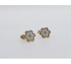Pendientes oro flor nacar circonita centroCierre tuerca presión