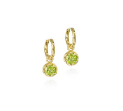 Pendientes de aro pequeños con Olivino de plata con baño de oro 18kPendiente de aro pequeño de la colección BLOOM – Birthstone con olivino natural,...