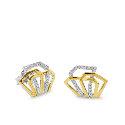 Pendientes pequeños de plata en forma romboide con circonitas, un diseño moderno y elegante que combina la geometría del rombo con el brillo sutil...