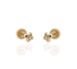 Pendientes de oro amarillo de 18 k, con forma de flor, en el centro circonitas.Cierre tuerca rosca