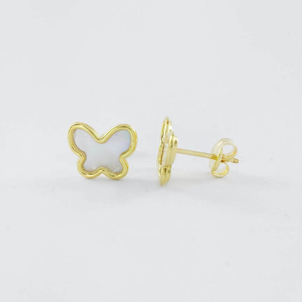 Pendientes de oro amarillo de 18 k, mariposa con nácar.Cierre de roscaMedidas: 5 x 5.5 mm