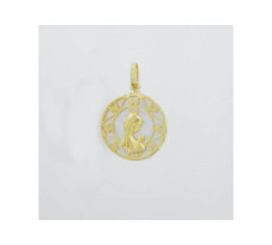 Medalla virgen niña nácar redonda 16 mm oro amarillo