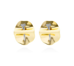 Pendientes plata chapada oro 18 kt circonitas SilkTamaño 2,5 X 2 cmCierre tuerca presión