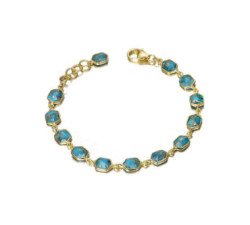 Pulsera con eslabones de piedras naturales TurquesaPulsera con eslabones de piedras naturales Turquesa facetadas en forma hexagonal, en plata de...