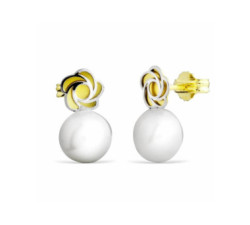 Pendientes oro flor combinado perlaCierre tuerca presión