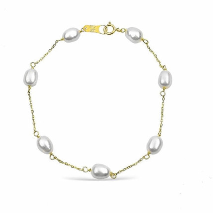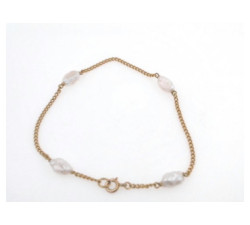PULSERA ORO COMUNION PERLAS AGUA DULCE BARBADACIERRE REASA REDONDO