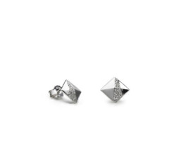 Pendientes pequeños de plata en forma romboide con circonitas, un diseño moderno y elegante que combina la geometría del rombo con el brillo sutil...