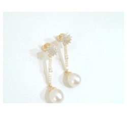 Pendientes plata chapada roseton barra circonitas y perlaCierre tuerca presión Largo pendiente 38 mm