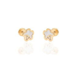 Pendientes de oro amarillo de 18 k. Estrella con circonitas y fondo de nácar.Medidas: 6 mmCierre tuerca de rosca
