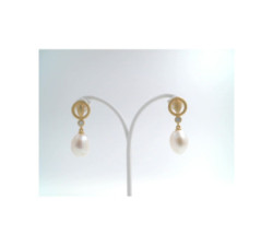 Pendientes de oro amarillo de 18 k, perla cultivada de 9 mm.Cierre tuerca presión