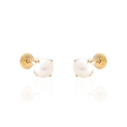 Pendientes oro flor perla cultivadaCierre ballestilla
