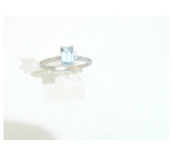Anillo oro blanco agua marina rectangular brillantesAgua marina talla esmeraldaMedida nº 12