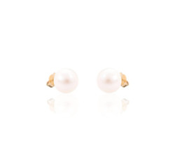 Pendientes de oro amarillo de 18 k, perla cultivada de 7 mm.Cierre tuerca presión