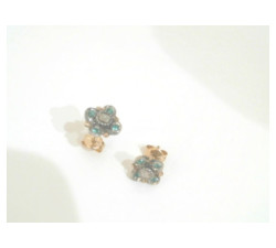 Pendientes de oro amarillo de 18 k, con forma de flor, en el centro circonitas.Cierre tuerca rosca