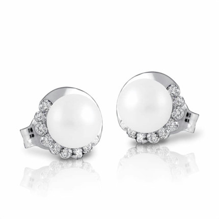 Pendientes perla botón 7 mm plata Cierre tuerca presión