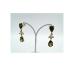 PENDIENTES PLATA CHAPADA DOS LAGRIMAS CIRCONITAS COLOR OLIVINA Y BLANCASLARGO 3 CM CIERRE TUERCA PRESION